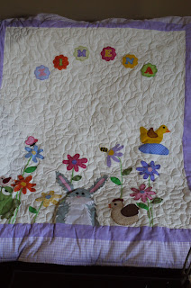 Yo de tanto pensar y pensar que hacer o hacer algo que le agradara observe en el blog de Emy (Días maravillosos) un hermoso conejo que ella muy amable compartió con nosotros con todo y patrones me puse a trabajar, y fue desde mayo que inicie, pero como siempre llego el día del viaje de mi mama y no había podido terminarla porque decidí agregarle más animalitos así como hacerle un acolchado especial de mariposas que me ha sacado las canas pero no es para menos si todo lo he hecho a mano, pero creo que al final valió la pena tanto trabajo.